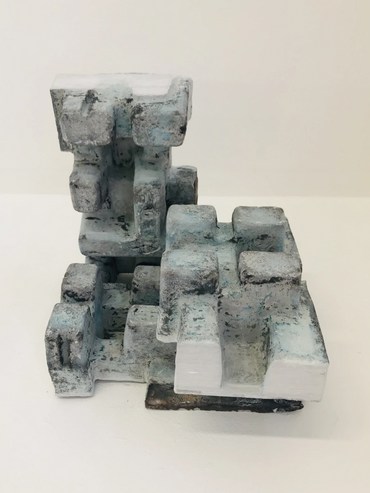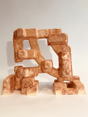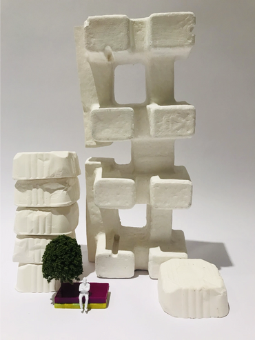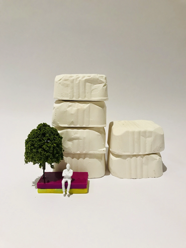 Plaster tinted with colour pigment, formed using moulds made from waste packaging.